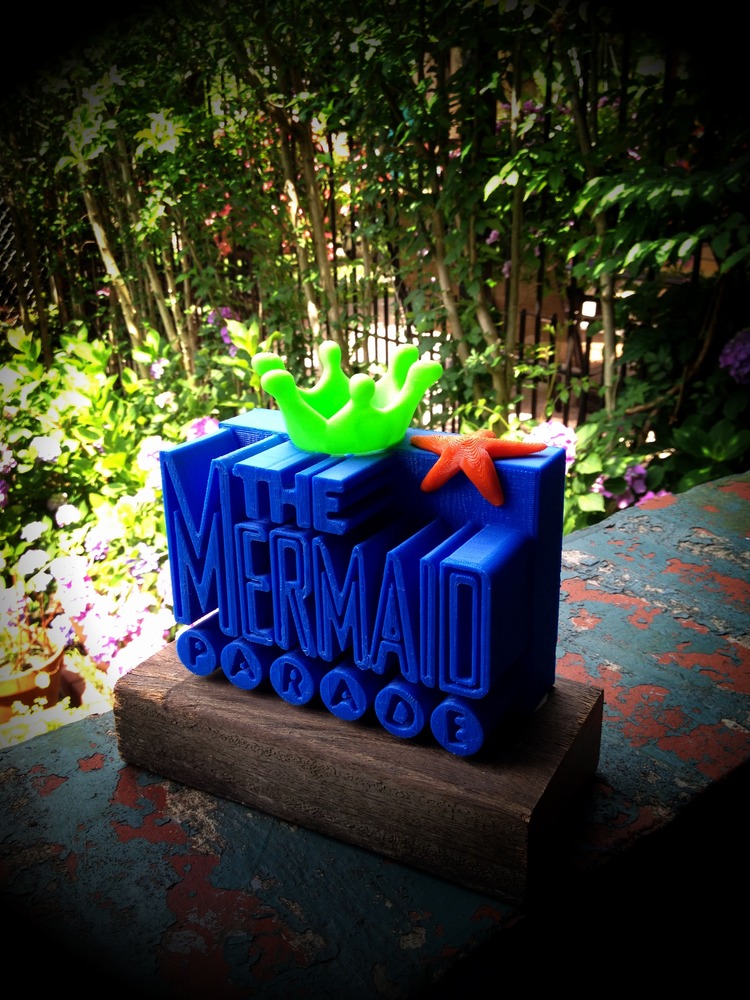 Because the parade has all these different awards, when I first met with MakerBot’s Creative Director Keith Ozar and Social Media Marketing Manager Sasha Litvinov, we came up with the concept that each trophy would consist of the extruded parade logo, plus some embellishments of appropriate sea themed objects sourced from MakerBot’s file sharing community Thingiverse.com. Coney Island’s Huckster Fabrications donated boardwalk wood for the base and the finishing touch will be when the bases get a brass plaque added, commemorating the award category and year.